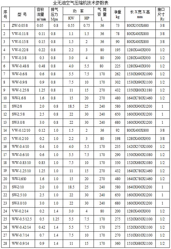 全無油空氣壓縮機
